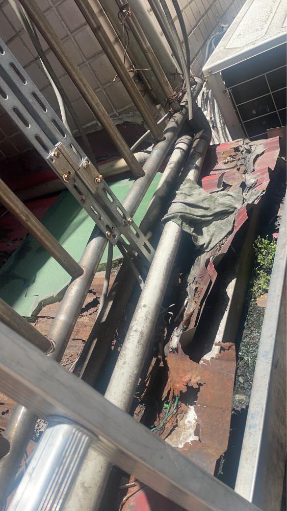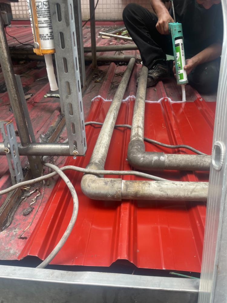鐵皮屋前緣生鏽破損導致漏水,維修前緣覆蓋不鏽鋼板 | 鐵皮屋修繕