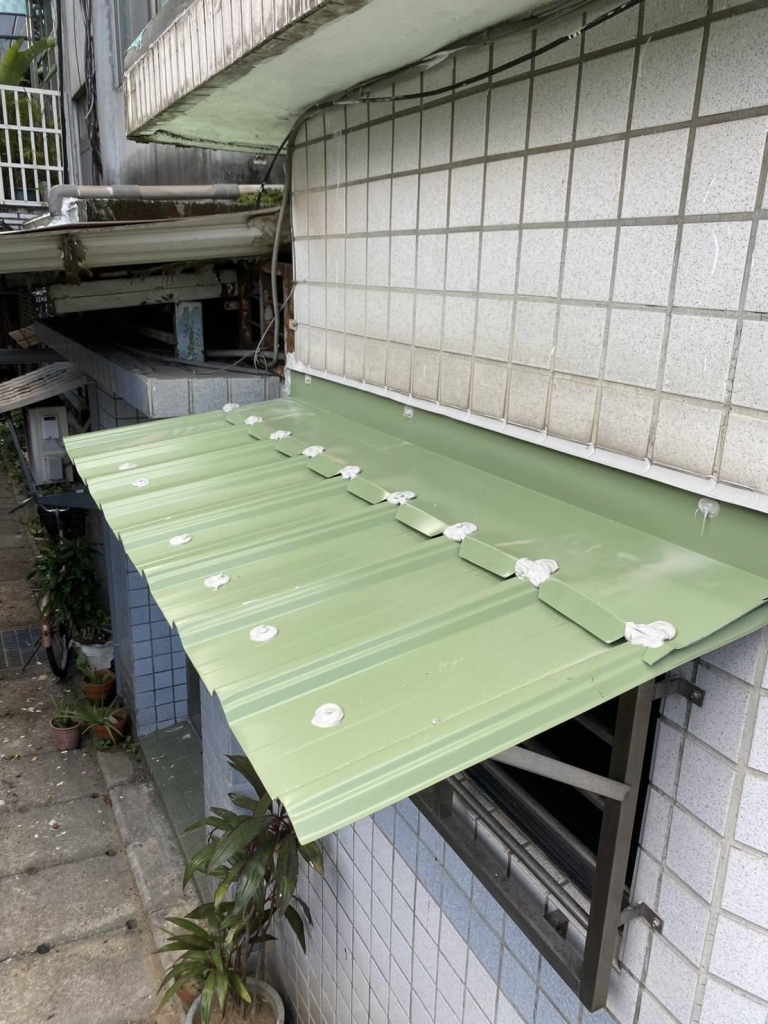 鐵皮屋前緣生鏽破損導致漏水,維修前緣覆蓋不鏽鋼板 | 鐵皮屋修繕
